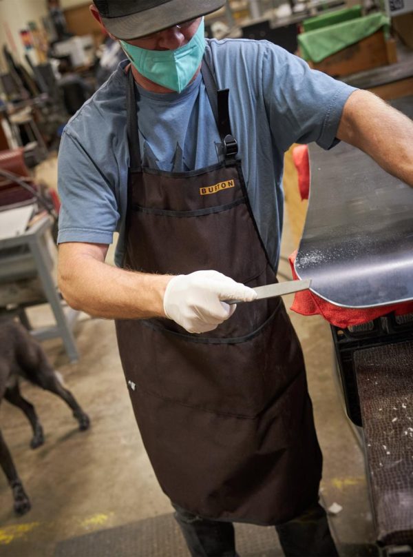 If you’re doing it right, you’re going to get dirty. The Burton Chore Apron has you covered, literally. From the durable face fabric to the soft flannel backing and the straps, it’s made from surplus materials put to good use. The outer layer comes from the material we use for packs. The soft lining is surplus from our Brighton and Grace flannels. The straps come from leftover seat belt webbing. Reduce. Reuse. Recycle.