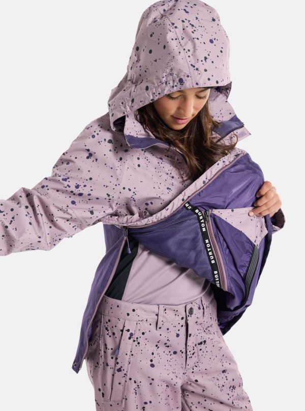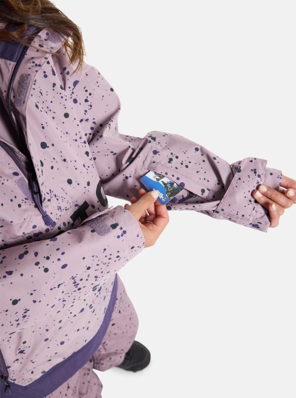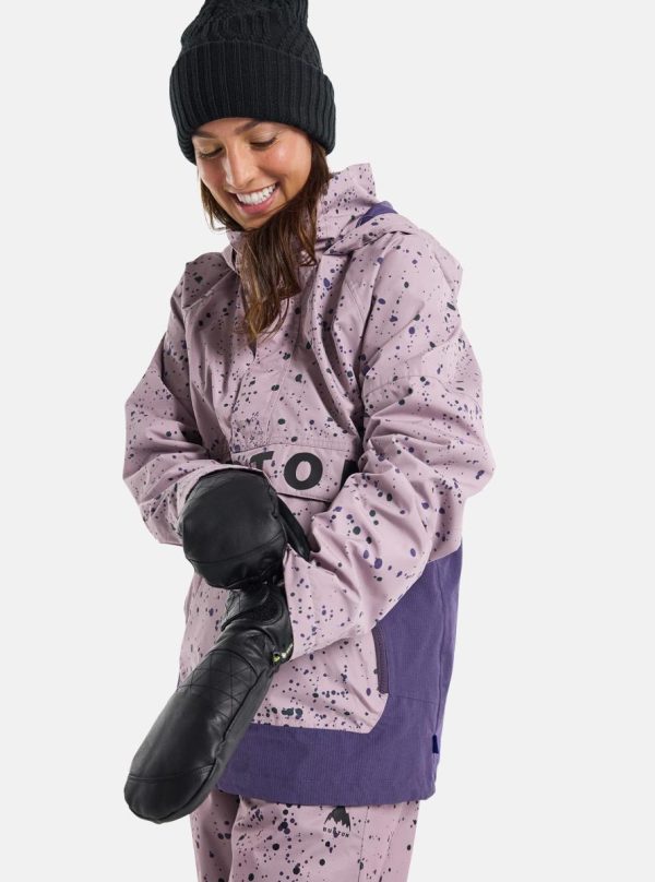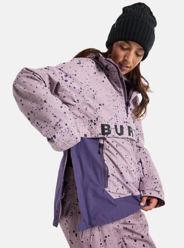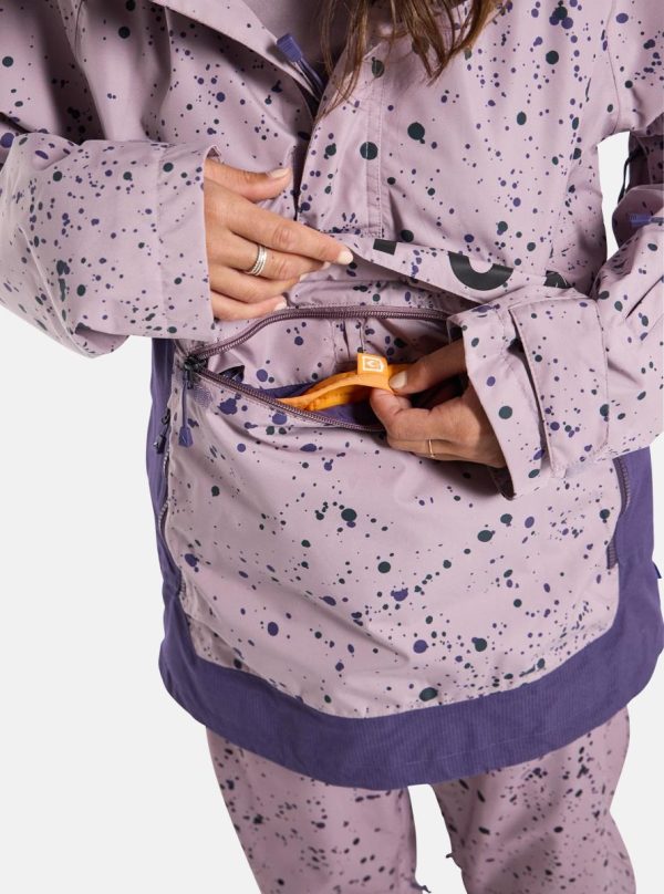 Staying dry and warm was never this easy for 90s shredders. The women’s Burton Frostner Anorak Jacket packs modern two-layer waterproof, breathable tech into a pullover jacket inspired by 90s anorak designs. There’s plenty of room for layering with pit zips to control your temp. Stuff like a removable waist gaiter, pass pocket, and a Pants connection make for extra-smooth days on the mountain.