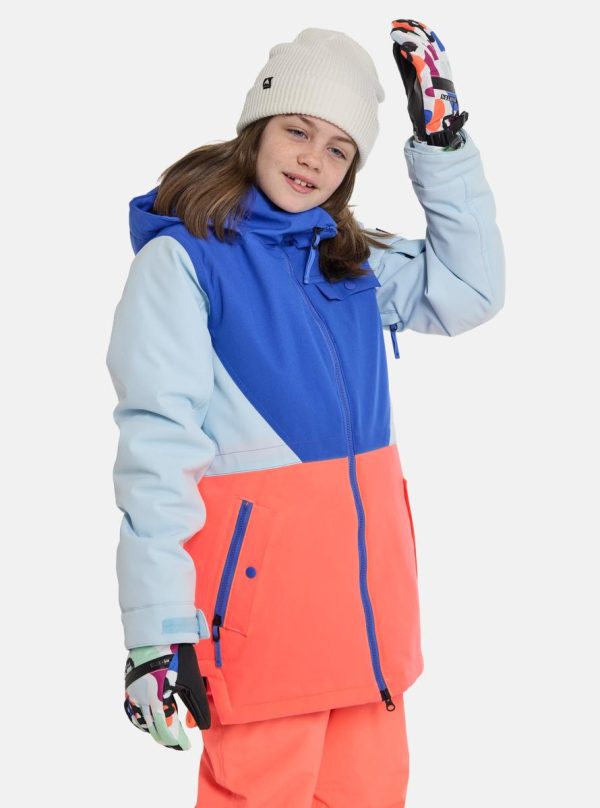 Keep your child warm and active on the mountain all day long. The girls’ Burton Khione Jacket delivers superior insulation perfect for chilly and stormy conditions. Featuring a parka-inspired cut with a fully waterproof, breathable exterior that locks out harsh weather. Practical on-slope features including a protective waist gaiter and cozy lined pockets ensure maximum comfort throughout the entire season. Multiple organized pockets keep essentials secure and accessible, so lift passes and phones stay warm and protected. Zip up, adjust the hood, and enjoy endless mountain adventures. Our innovative Room-To-Grow System extends the jacket’s lifespan for multiple seasons of use.