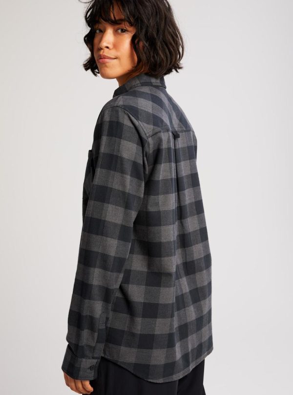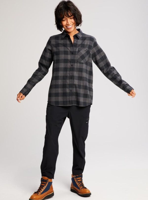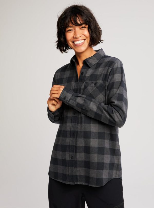 Grace Long Sleeve Flannel True Black Heather Buffalo Plaid | Women Burton Shirts & Flannels