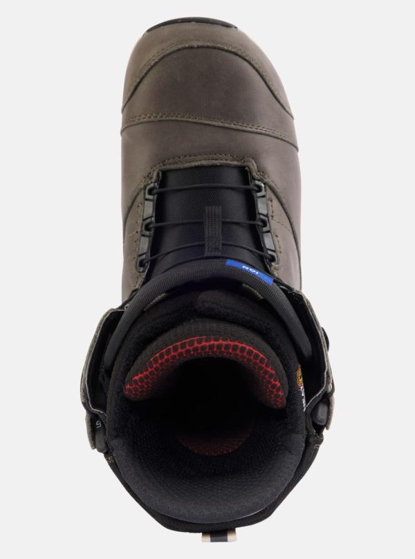 For riders like Danny Davis who want high performance and full grain leather style, the men’s Burton Ion Leather Snowboard Boots fuse waterproof leather with the trademark features that have made these boots legendary. The proven Ion design promotes a relaxed, natural stance that offers the control to thread lines and stomp landings with swagger rarely seen in snowboarding. Lightweight heat-moldable liners ensure a comfortable fit with the tech to reflect heat and wick sweat that keeps feet warm and dry all day long.