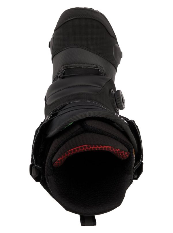 The men’s Burton Ion Step On® Snowboard Boots combine the legendary Ion boot with the intuitive ease of Step On. A firm flex and foot-hugging support provide the power to charge as you like. A BOA® Fit System lets you micro-adjust the feel and tension to suit your riding style. Add out-of-the-box comfort plus liner tech to manage sweat and seal in heat and you’ve got happy feet that keep you riding longer. Three connection points to the binding, two at the toe and one at the heel, allow for unmatched security and board control. Just step on and go.