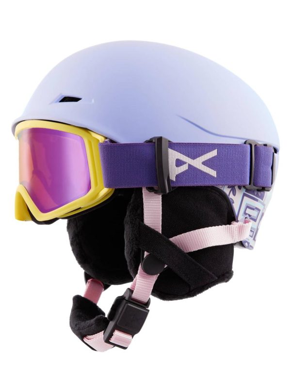 The kids’ Anon Define Helmet simplifies the experience for kids and parents alike by integrating goggles into the helmet so nothing falls off or gets lost. The kid-proof design includes a hardshell exterior for everyday durability. A 180° BOA® Fit System offers quick, micro-adjustable fit with the turn of a dial, and fixed vents keep the air moving for fog-free goggles and all-day comfort. Our strapper-keeper technology incorporates the goggle right into the helmet for a perfect fit around small faces. Includes a protective microfleece tote bag for storage and transport.
