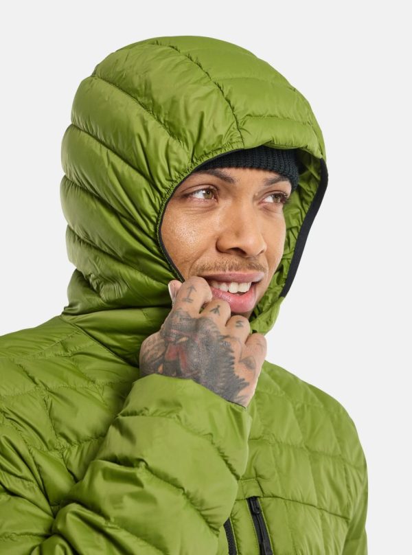 Nothing beats the warmth-to-weight ratio of down insulation. We designed the men’s Burton Mid-Heat Hooded Down Insulated Jacket for easy layering under your shell, so you can stay warmer and ride longer. We added just enough high-loft down to turn up the heat without creating too much bulk. Lightweight ripstop fabric keeps it durable without limiting movement, and it resists light weather, so you can wear it on its own, too.