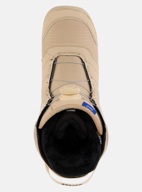 Soft, forgiving, and quick to adjust, the Burton Mint BOA® boots are ready for progression right out of the box. Effortlessly fine tune fit tension with the micro-adjustable BOA® Fit System, and cradle your feet in the lightweight cushioning of a DynoLITE outsole. The Mint’s relaxed ride is matched by the added warmth of heat-reflective tech that seals in body heat to keep your toes warm and the custom feel of heat-moldable liners.