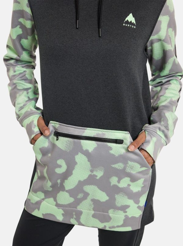 A brushed French terry fleece pullover hoodie that will give you the comfort of home wherever you go. The women’s Burton Oak Long Pullover Hoodie is made with moisture-wicking, quick-drying polyester fleece. This hoodie features a kangaroo hand-warmer pocket and a zippered top-loading pocket to keep your valuables out of the lost-and-found.