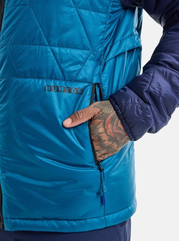 The men’s Burton Versatile Heat Hooded Synthetic Insulated Jacket is that versatile puffy that you can grab for hikes, walks, and travel. Synthetic fill mirrors the loft and warmth of down while being durable and easy to care for. It layers under a shell and resists wind and snow for wear on its own. It stuffs down into a pocket for easy stowing in your pack.